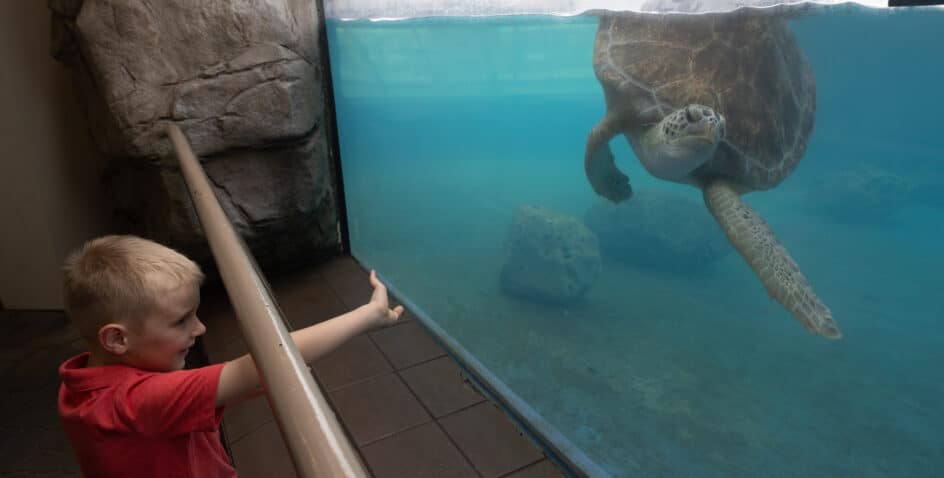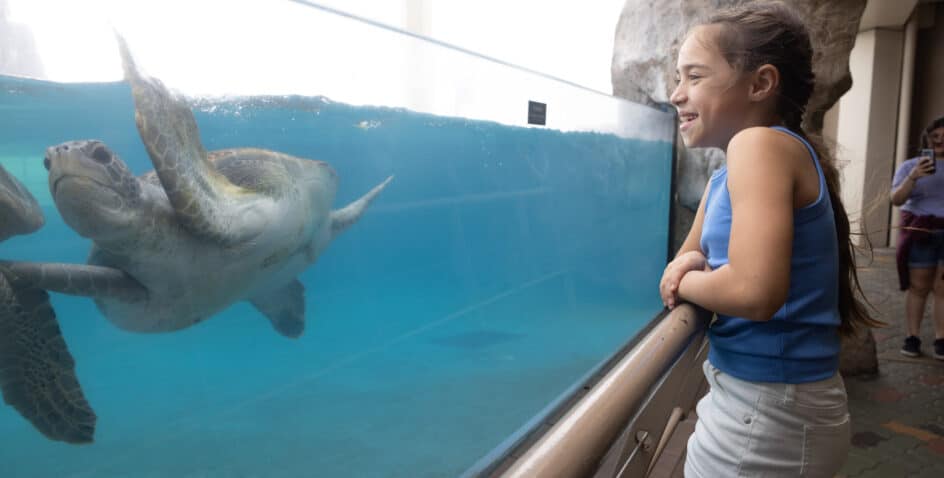 Green, Hawksbill, and Kemps Ridley sea turtles live in this natural lagoon-like habitat. These turtles are all rehabilitated and deemed non-releasable, either due to injuries or repeated strandings. You may notice that some of their shells float near the surface of the water due to an air bubble resulting from their injury. Learn about their nesting spots on the Texas coast, how to report these to authorities if you find them, and the daily habits you can take to protect sea turtles in their natural habitat. In our daily Turtle Tales presentation, get an even more in-depth look and how we care for these turtles and observe them as they feed on lettuce and other vegetables. Find out what we are doing to rescue, rehabilitate, and release other sea turtles in partnership with the Padre Island National Seashore.