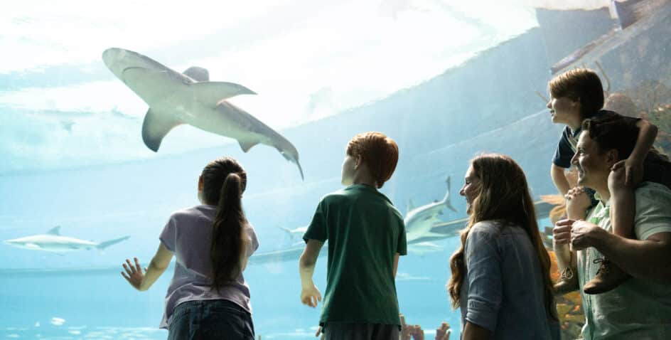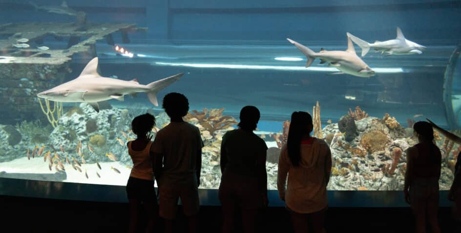 The H-E-B Caribbean Sea exhibit combines a thrilling look at the ocean’s most infamous predators with the experience of diving a real-life Caribbean shipwreck, all without having to actually get wet.